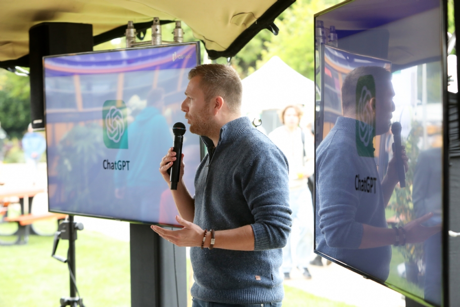 | Roy van der Groef ging tijdens zijn openingslezing dieper in op de voordelen van AI voor hoveniers. |