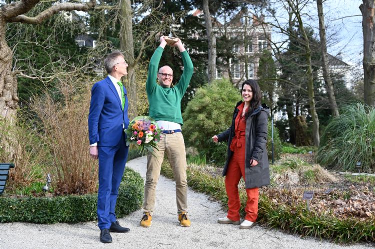 Daan Bleichrodt werd gisteren bij IVN Natuureducatie gekroond tot Greenfluencer 2022. Hij kreeg de nieuwe trofee uit de handen van redacteur Willemijn van Iersel en van directeur Groenkeur Dick Oosthoek.